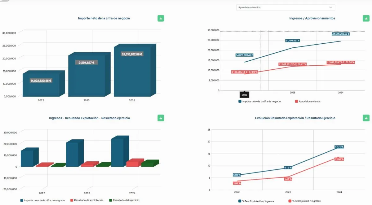Para poder realizar análisis, proyecciones y proporcionar un entorno de análisis completo es necesario disponer de los libros diarios. VELARIX analiza la contabilidad desde el dato base (asiento contable) y te proporciona información analizada, alertas sobre partidas con una evolución no adecuada, etc. Pídeselos a tu departamento contable o a tu asesor.